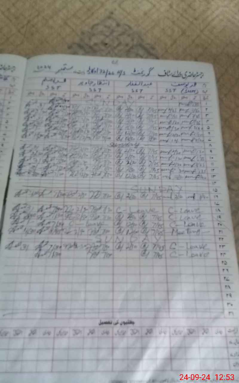 | CNIC | Full Name | Designation | R/C | Absence During Last Calender Month |