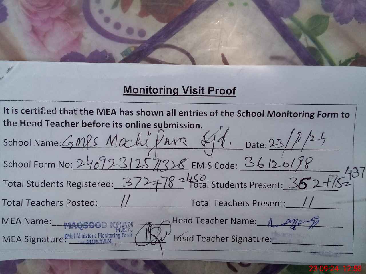 | EMIS Code: 36120198 | Name of School: GMPS MOCHI PURA SHUJABAD DISTT. MULTAN | |||