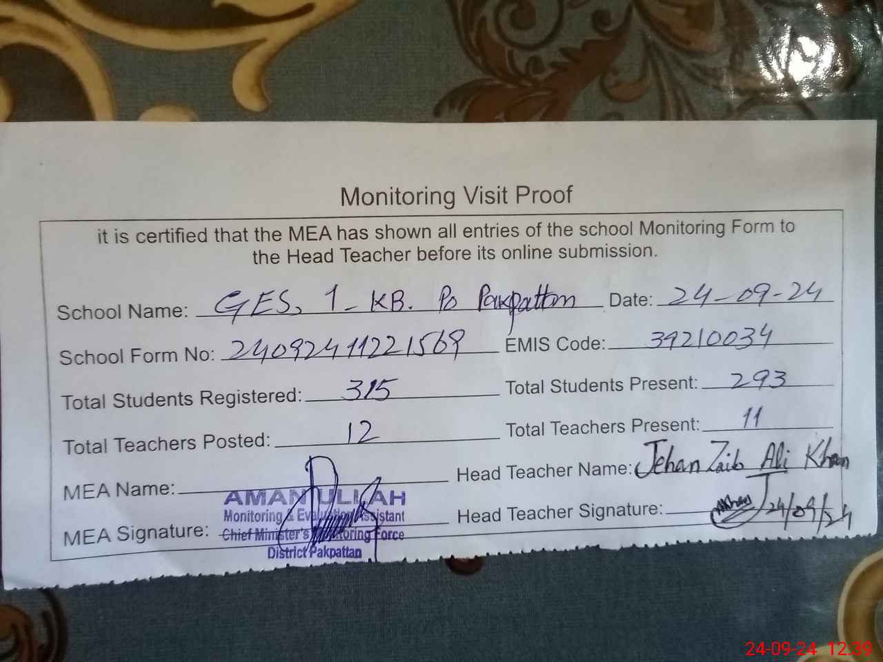 | EMIS Code: 39210034 | Name of School: GES 1 KB P/O PAKPATTAN | |||