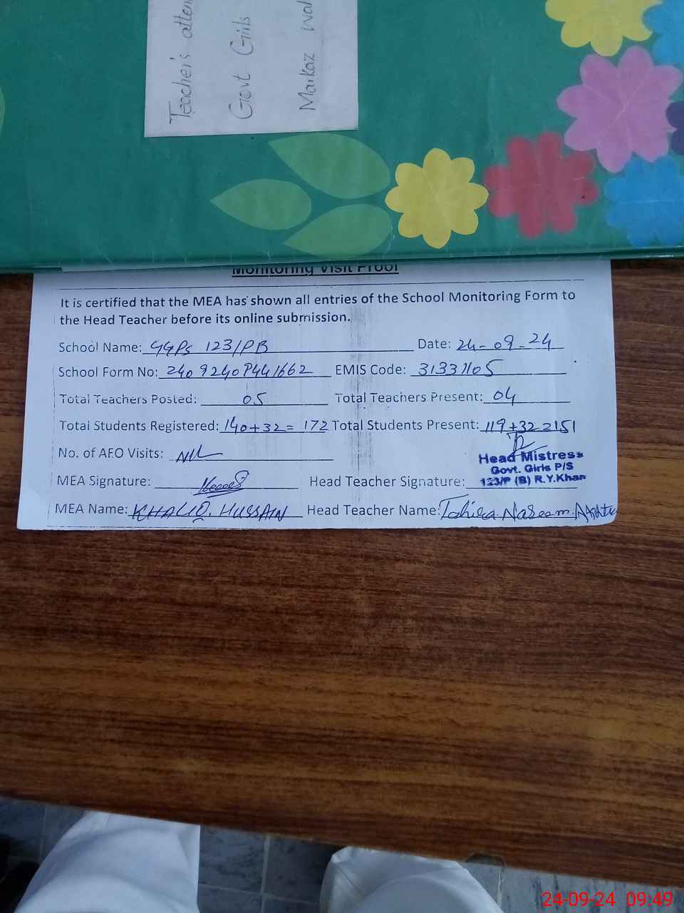 | EMIS Code: 31331105 | Name of School: GGPS 123 B | |||
