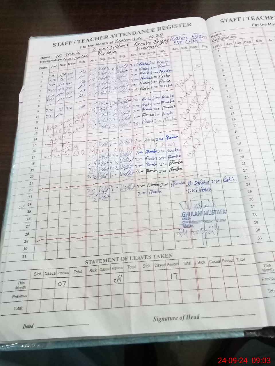 | Name: Ay**** Pa**** Designation: (School Headmaster's/Headmistress's) Headmistaress Phone/Cell Number: 03**** |