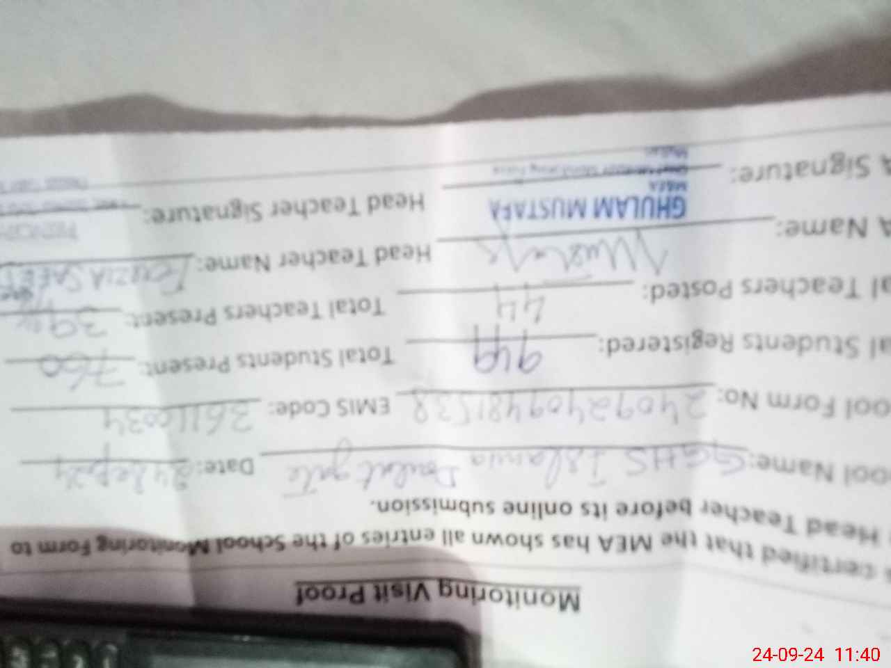 | Name: Sa**** Za**** Designation: (School Headmaster's/Headmistress's) HEADMISTRESS Phone/Cell Number: 03**** |