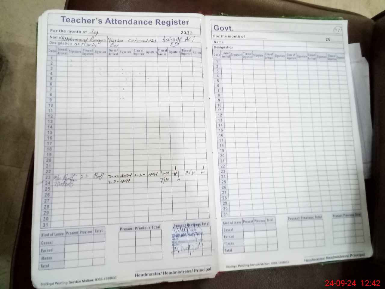 | Name: MU**** Ak**** Bu**** Designation: (School Headmaster's/Headmistress's) Principal Phone/Cell Number: 03**** |