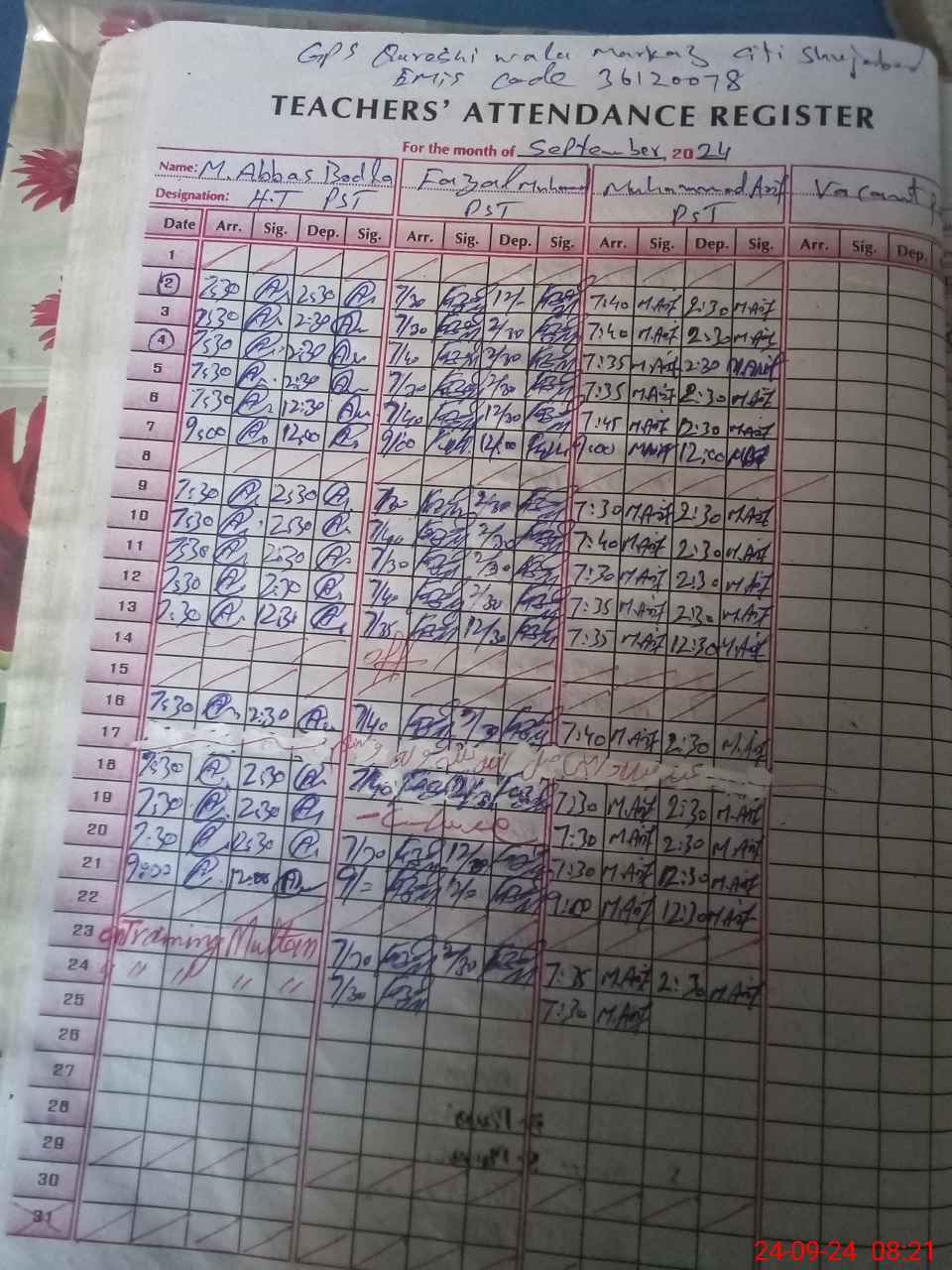 | EMIS Code: 36120078 | Name of School: GPS QURESHI WALA P.O AGHAR KHANI TEH SHUJABAD | |||