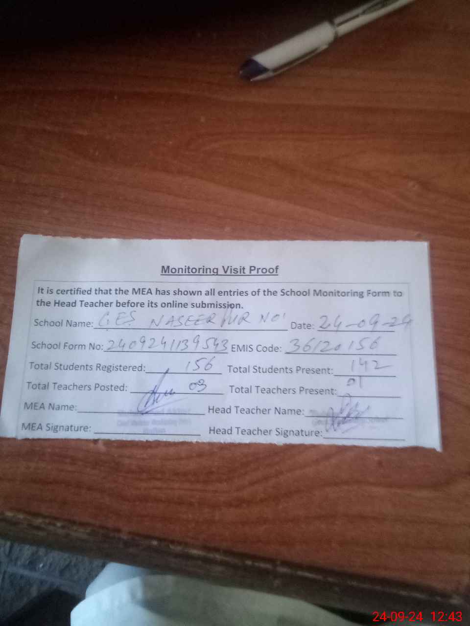 | EMIS Code: 36120156 | Name of School: GES NASEER PUR NO.1 SHUJABAD | |||