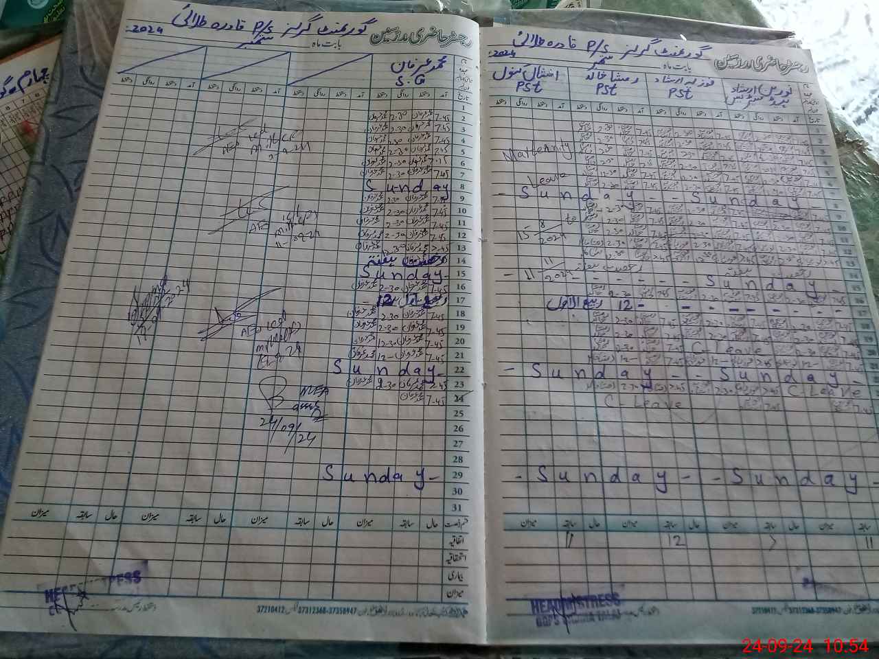 | Leave | Duty | Absent | Maternity | Medical | Ex- Pak |