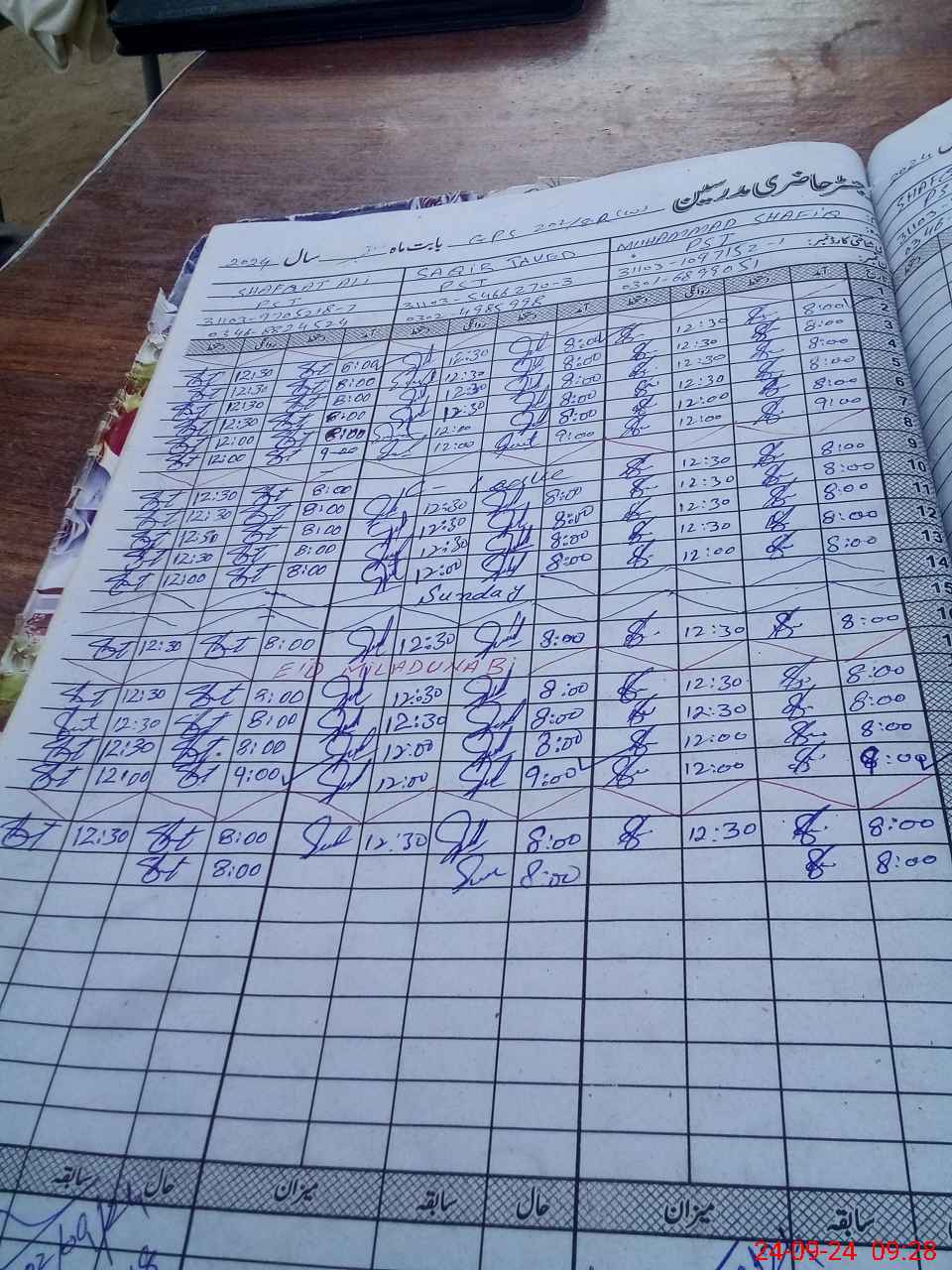 | CNIC | Full Name | Designation | R/C | Absence During Last Calender Month |