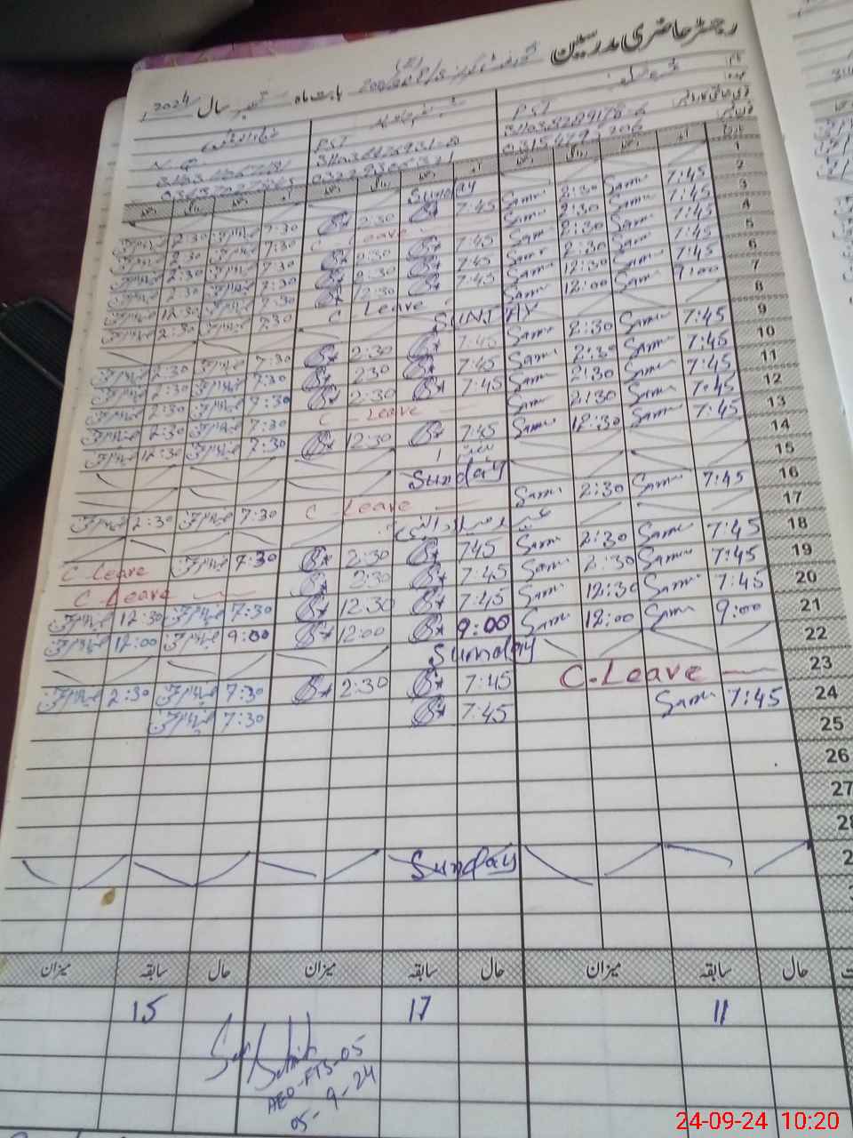 | CNIC | Full Name | Designation | R/C | Absence During Last Calender Month |