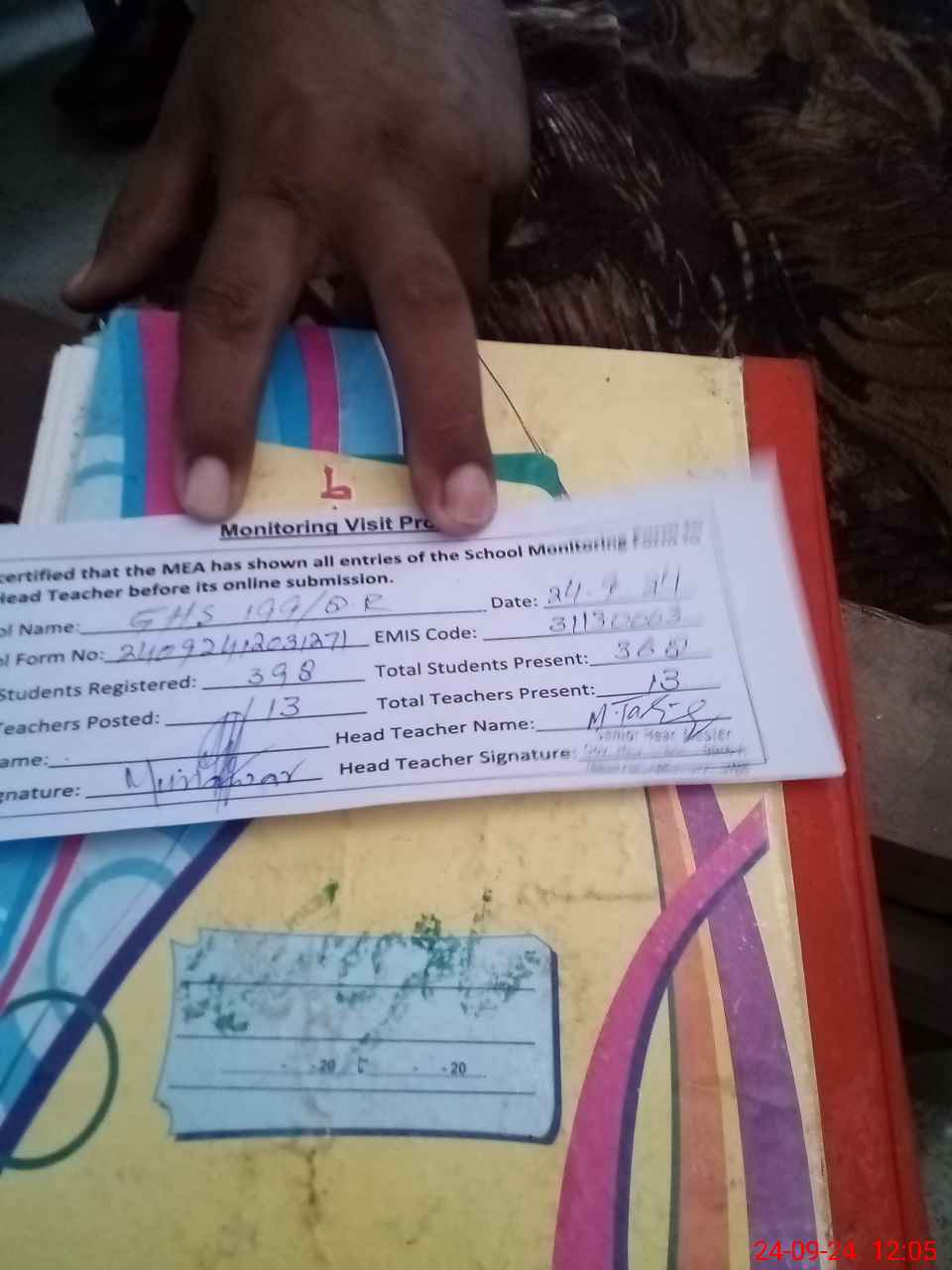 | EMIS Code: 31130003 | Name of School: GHS CHAK 199/8R | |||