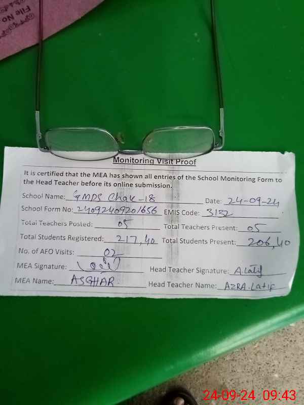 | EMIS Code: 31320505 | Name of School: GMPS CHAK NO.18/A | |||