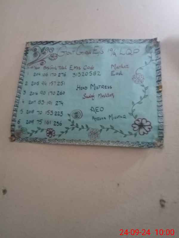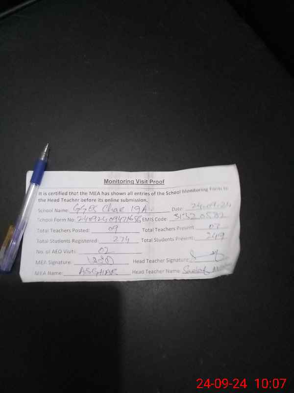 | EMIS Code: 31320582 | Name of School: GGES CHAK NO.19/A | |||