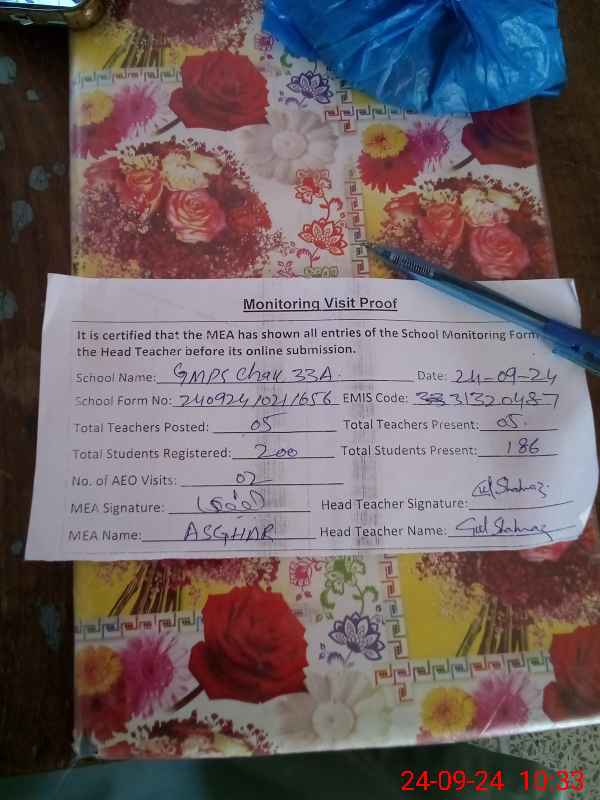 | EMIS Code: 31320487 | Name of School: GMPS CHAK NO. 33/A BHUTTIAN | |||