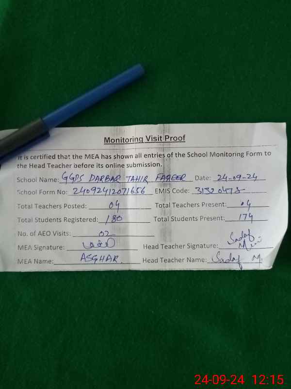 | EMIS Code: 31320478 | Name of School: GGPS DARBAAR TAHIR FAQEER KACHI MANDI | |||