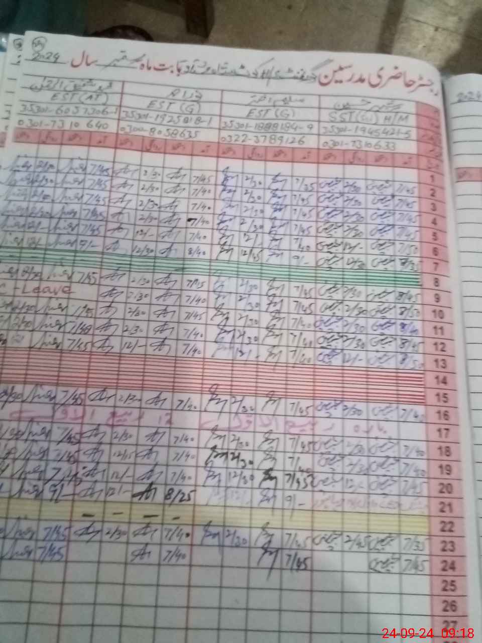 | Leave | Duty | Absent | Maternity | Medical | Ex- Pak |