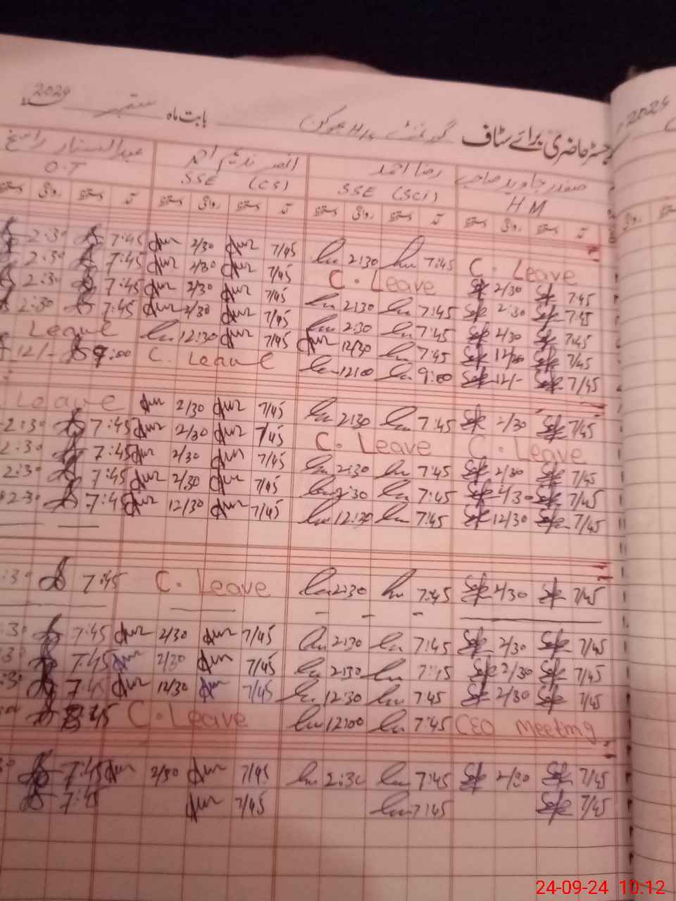 | CNIC | Full Name | Designation | R/C | Absence During Last Calender Month |