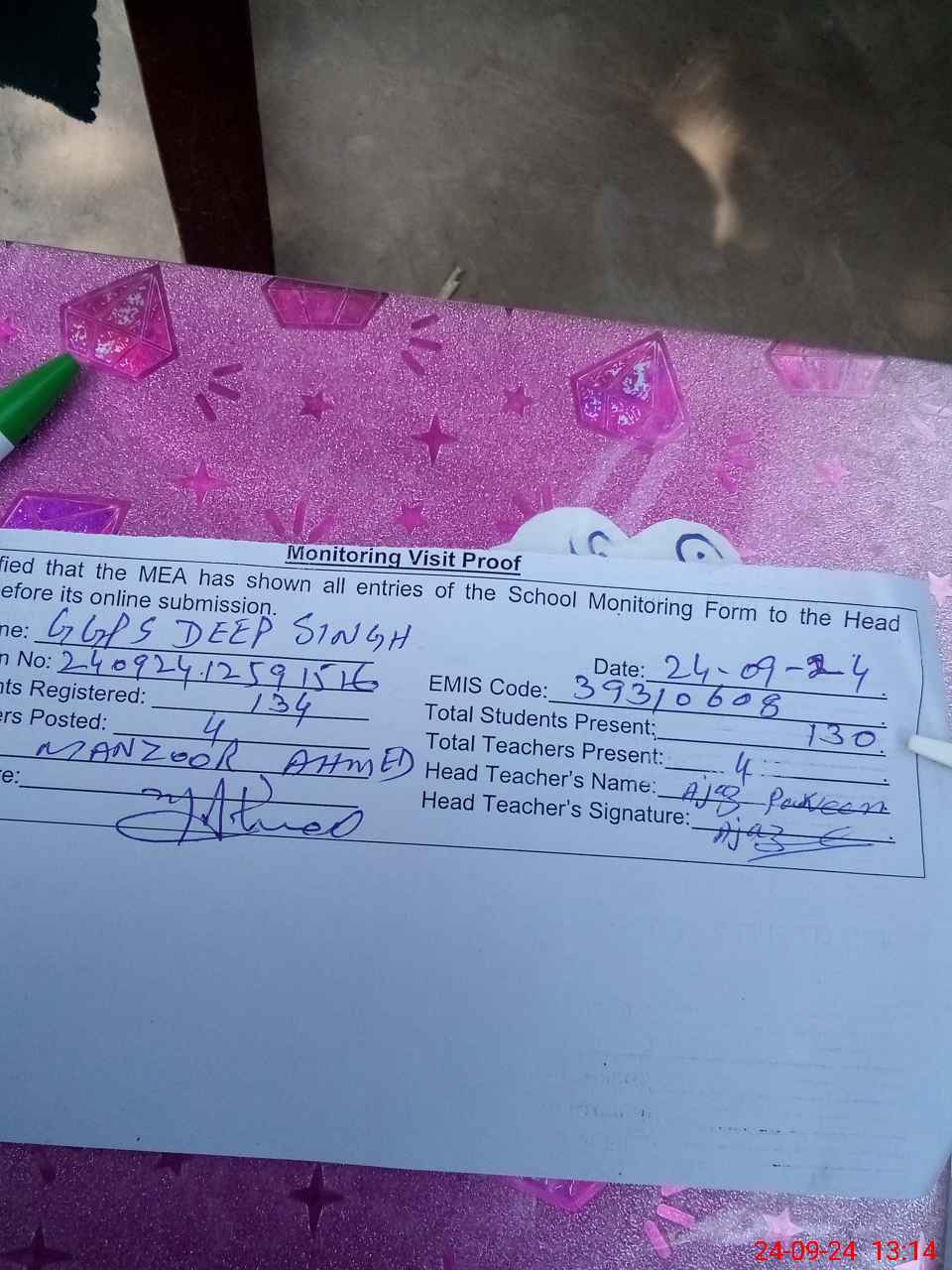 | Attendance Register | Head Teacher | MEA with School | Visit Proof |