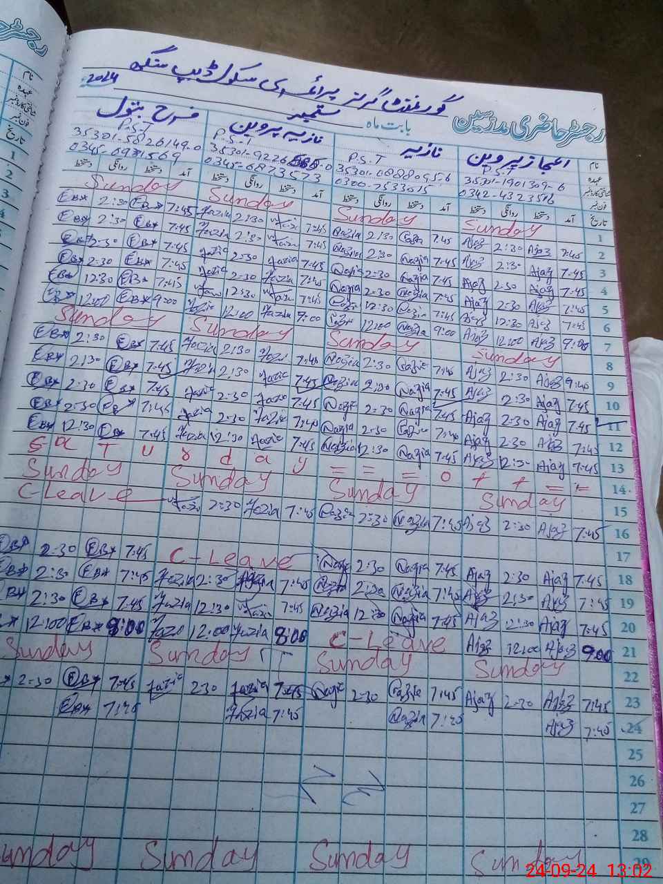 | Leave | Duty | Absent | Maternity | Medical | Ex- Pak |