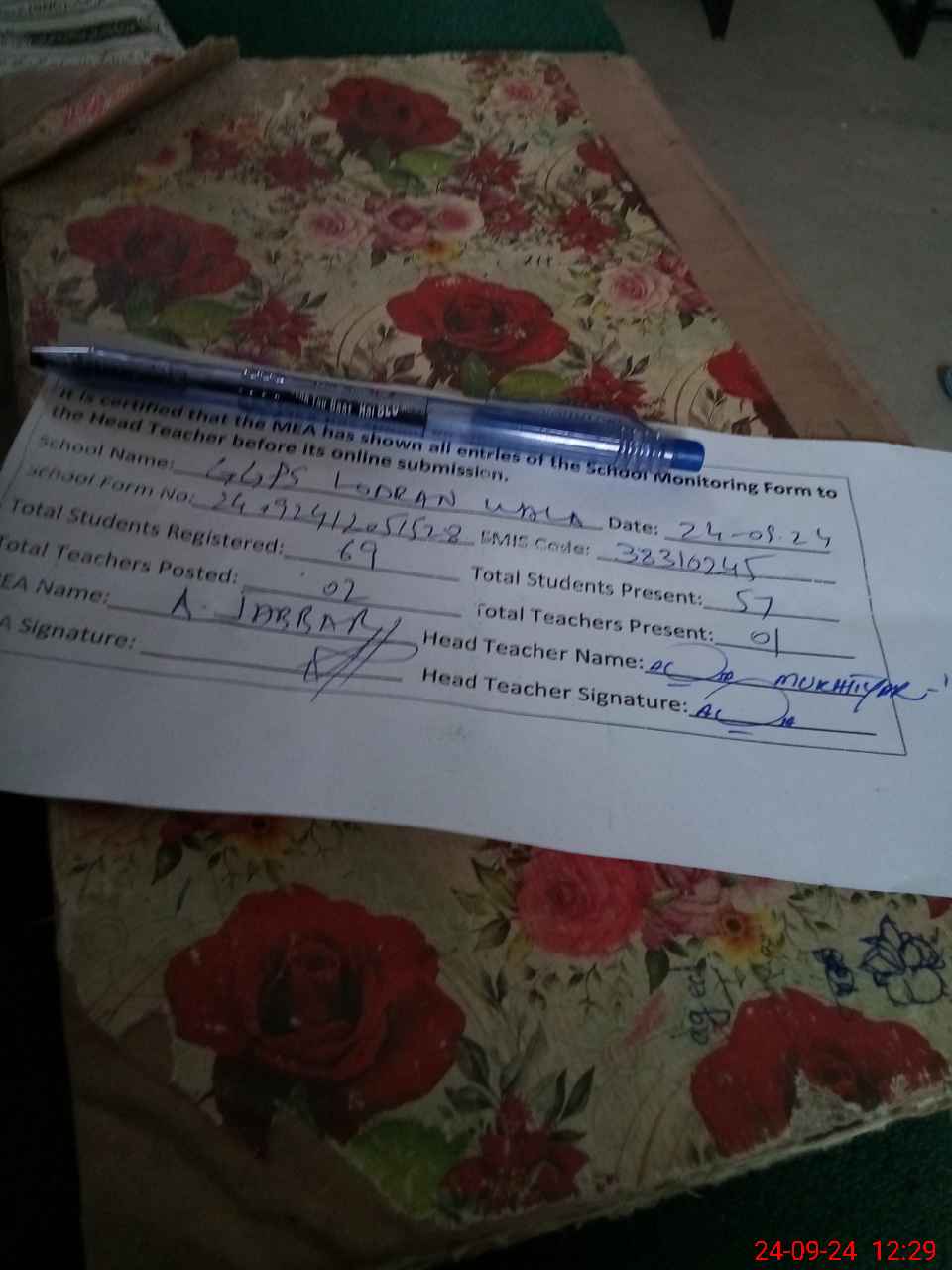 | Attendance Register | Head Teacher | MEA with School | Visit Proof |