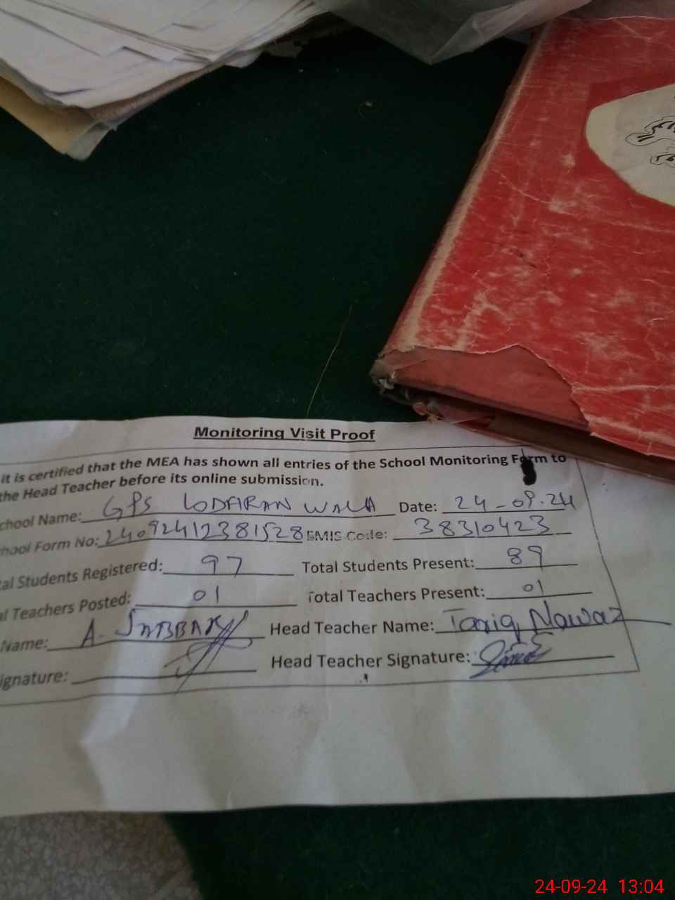 | EMIS Code: 38310423 | Name of School: GPS LODHRAN WALA | |||