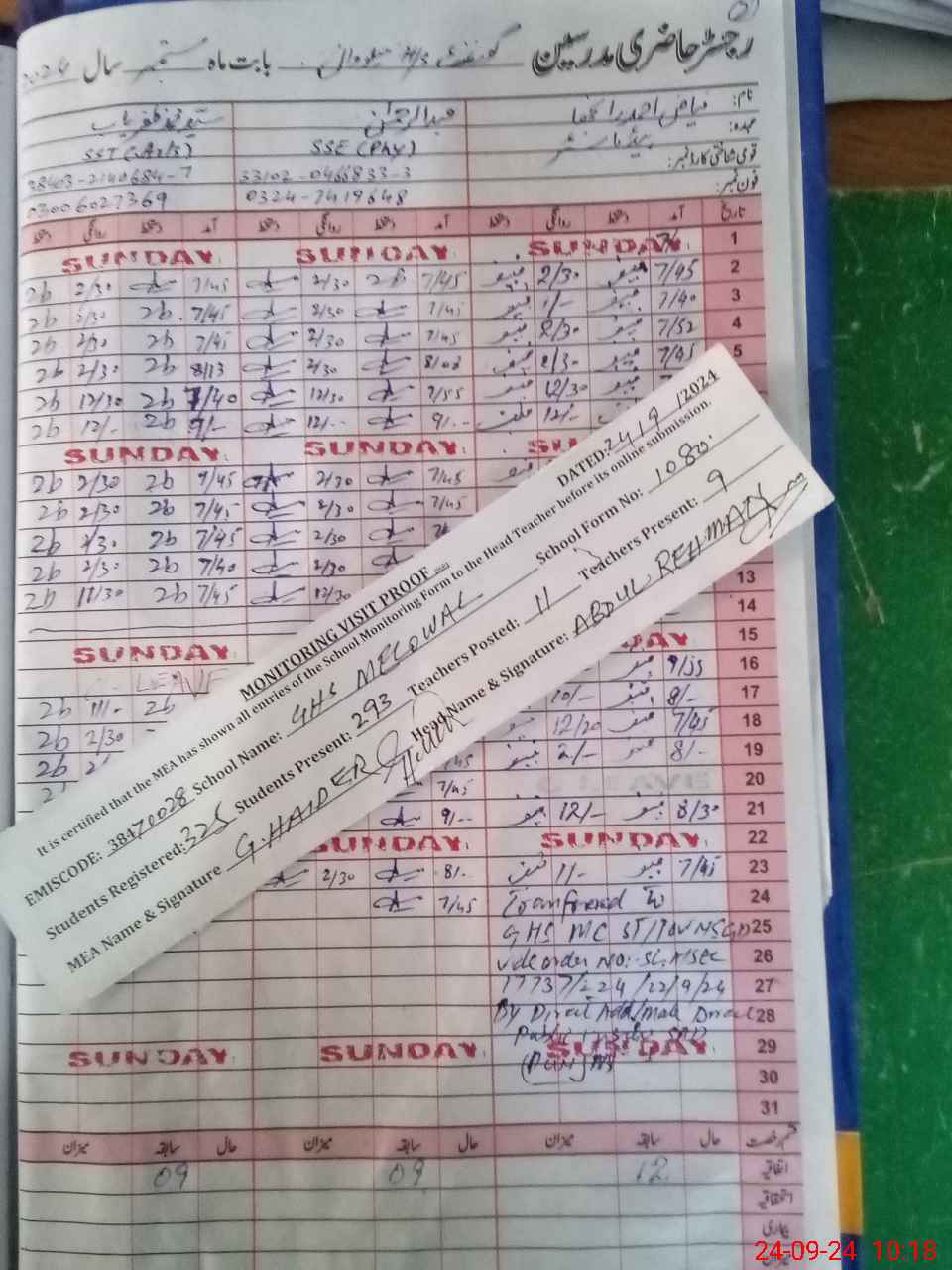| Name: Sy**** Mu**** Za**** Designation: (School Headmaster's/Headmistress's) Inch HEADMASTER Phone/Cell Number: 03**** |
