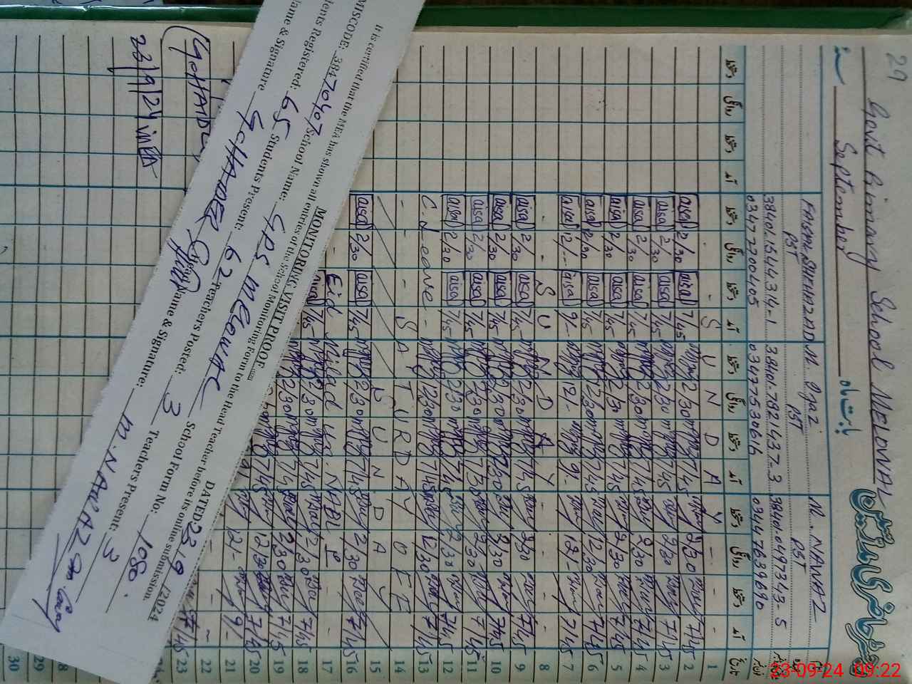 | Name: MU**** NA**** Designation: (School Headmaster's/Headmistress's) PST Phone/Cell Number: 03**** |