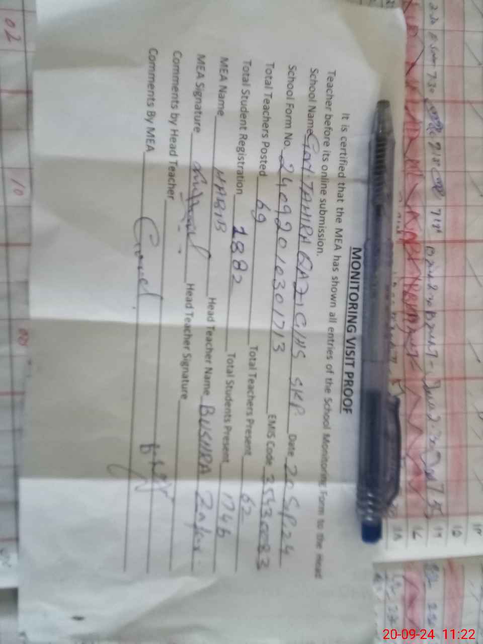 | Attendance Register | Head Teacher | MEA with School | Visit Proof |