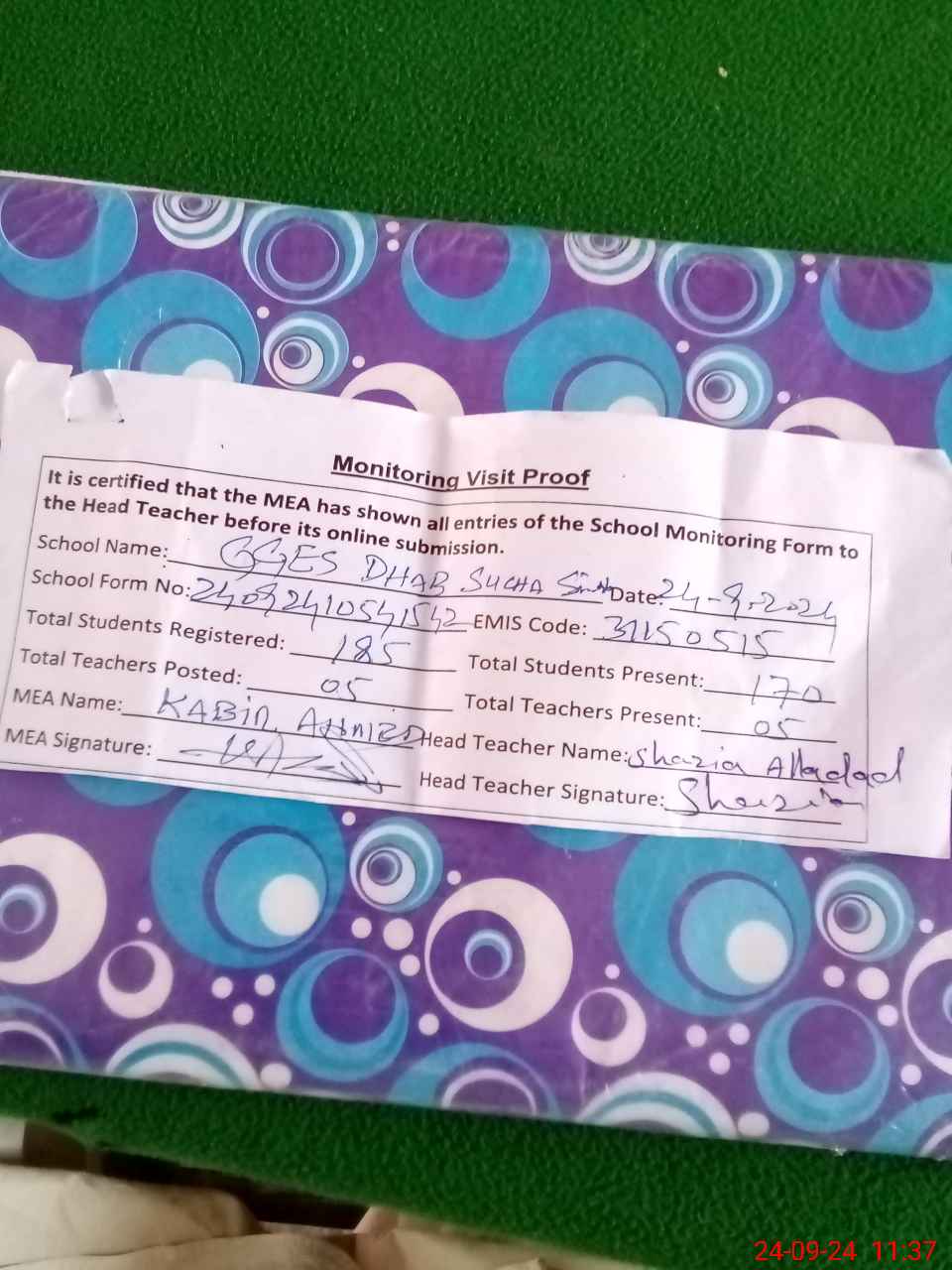 | EMIS Code: 31150515 | Name of School: GGES DHAB SUCHA SINGH | |||