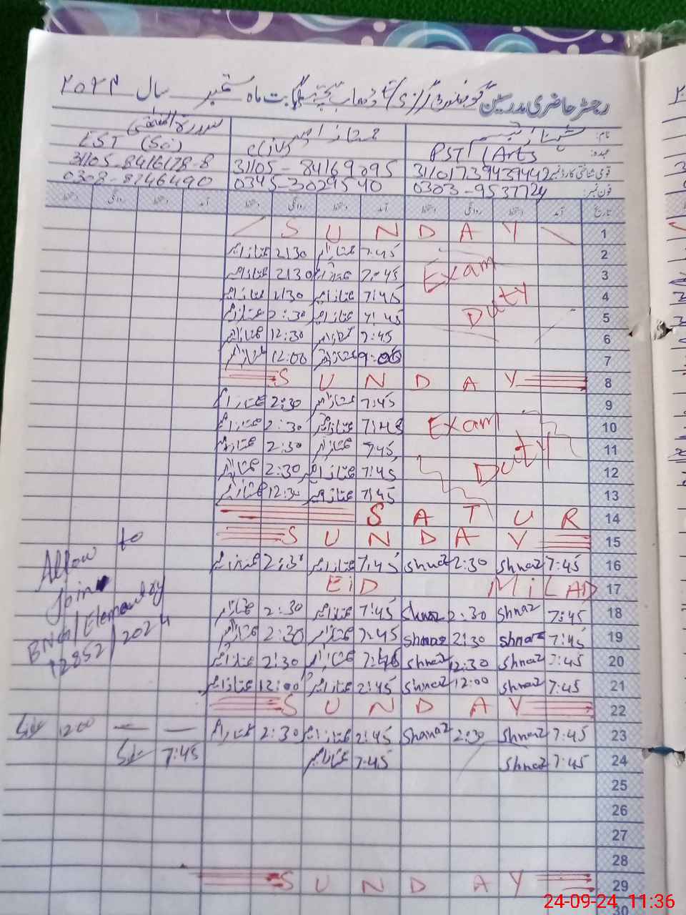 | Name: Sh**** Al**** Da**** Designation: (School Headmaster's/Headmistress's) EST Phone/Cell Number: 03**** |
