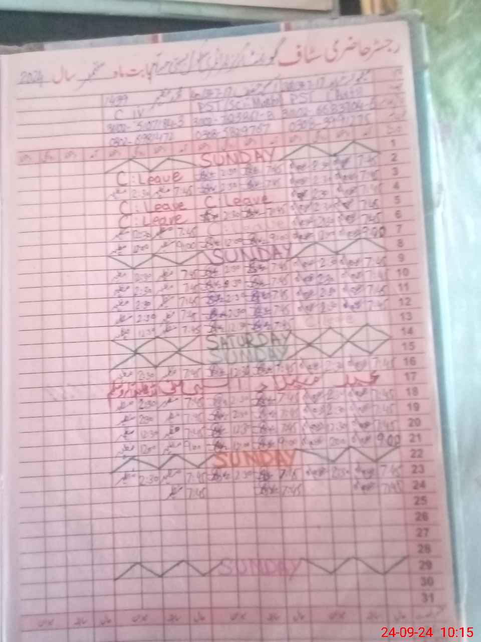 | CNIC | Full Name | Designation | R/C | Absence During Last Calender Month |