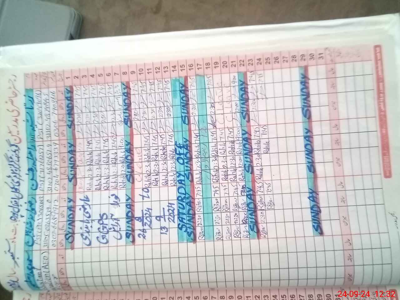 | CNIC | Full Name | Designation | R/C | Absence During Last Calender Month |