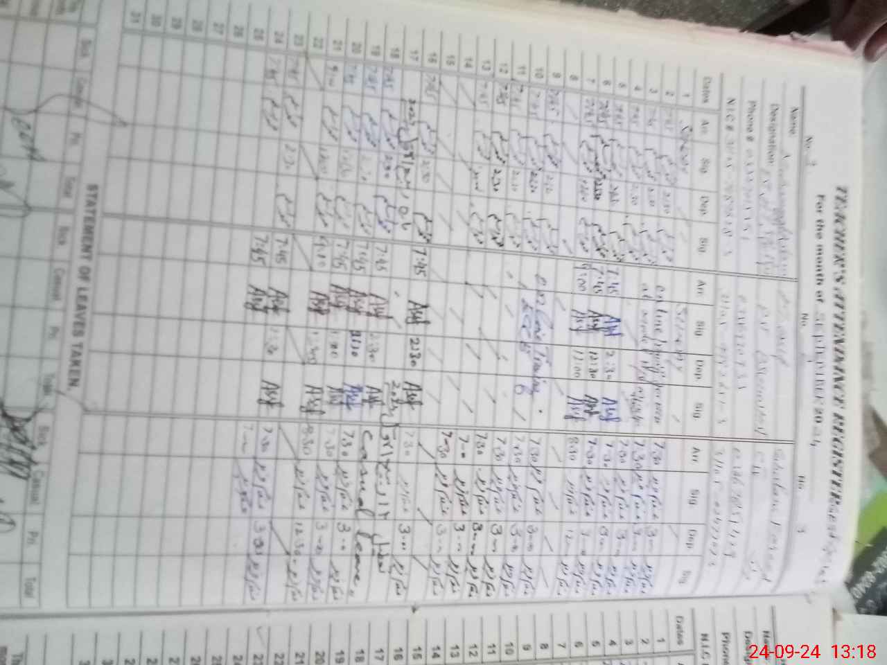 | CNIC | Full Name | Designation | R/C | Absence During Last Calender Month |