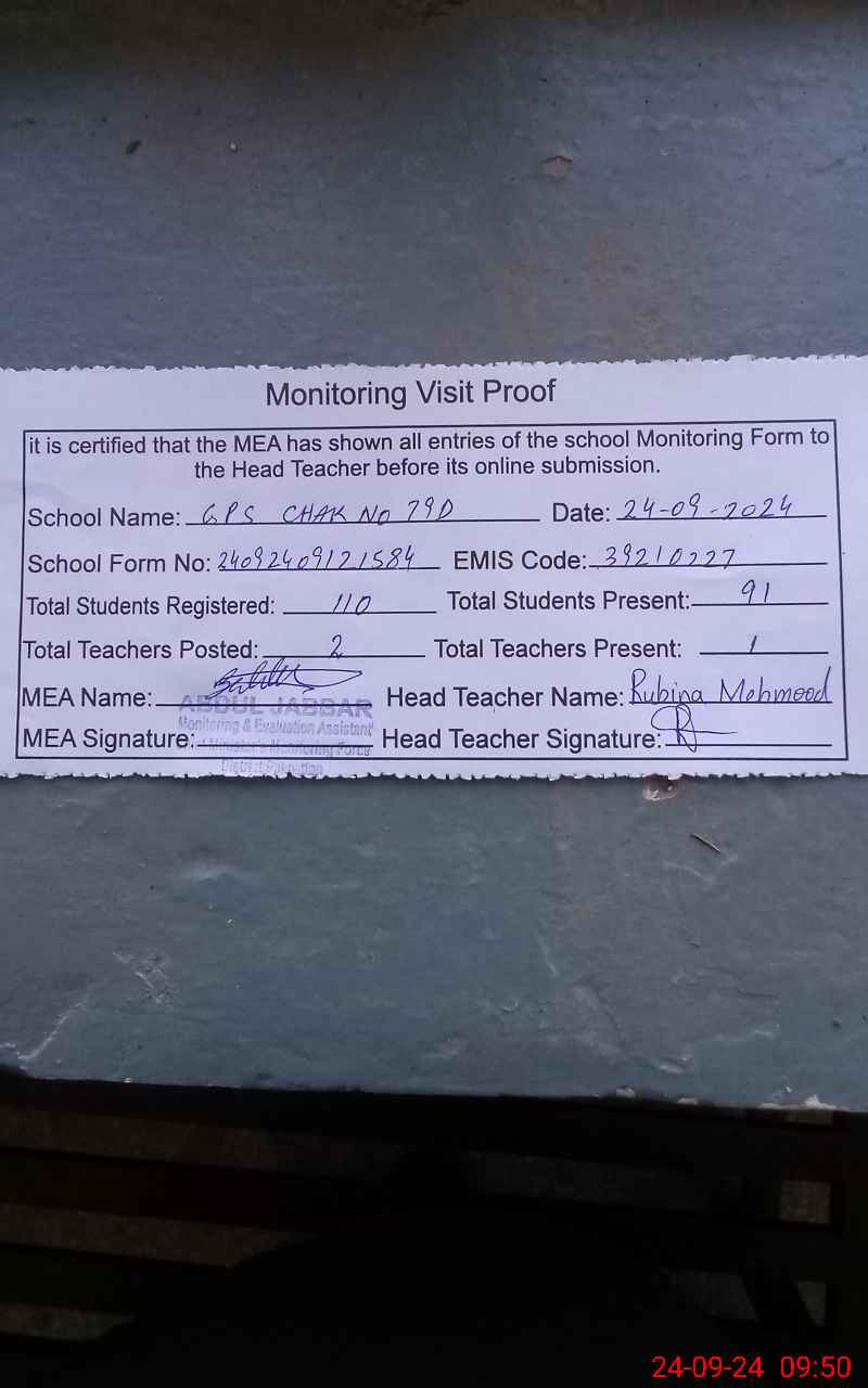 | EMIS Code: 39210227 | Name of School: GPS CHAK NO. 79 D | |||