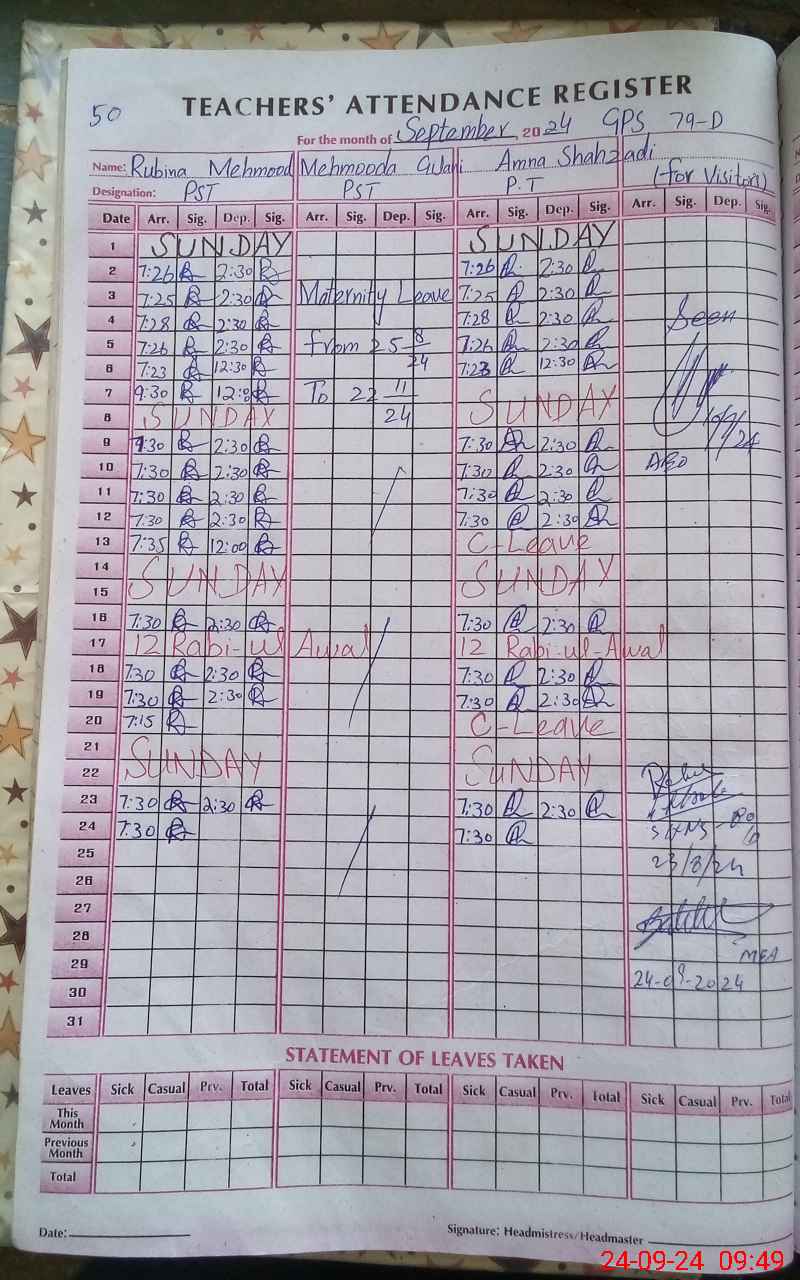 | 36**** | Me**** Gi**** | PST | Regular | 10 | 0 | 0 | 7 | 0 | 0 | 0 | 0 | 3 | Maternity |