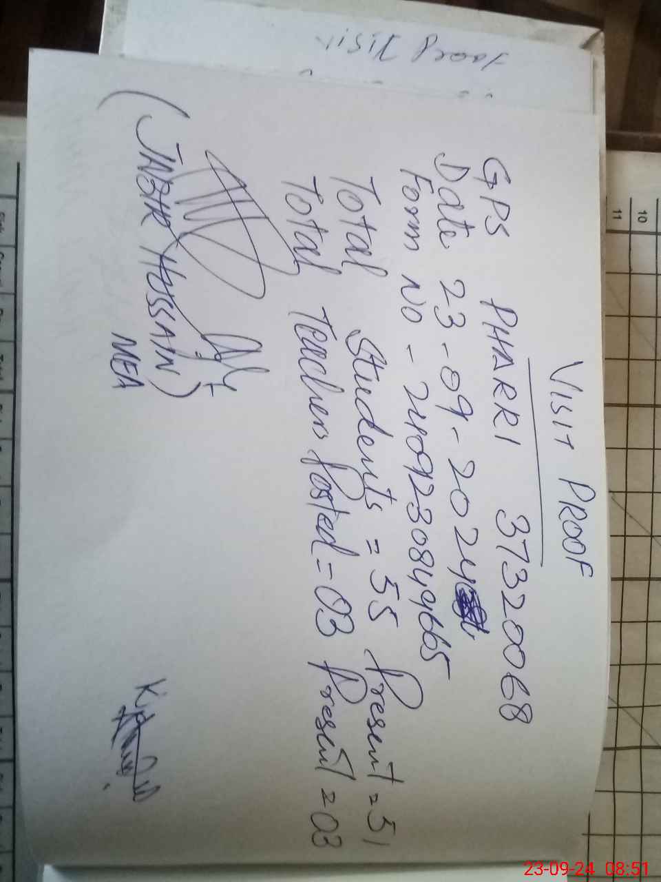 | Attendance Register | Head Teacher | MEA with School | Visit Proof |