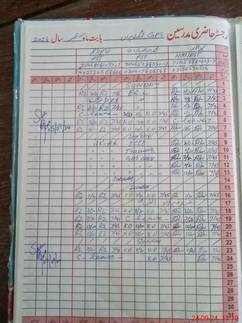| Name: MU**** AN**** Designation: (School Headmaster's/Headmistress's) PST Phone/Cell Number: 03**** |