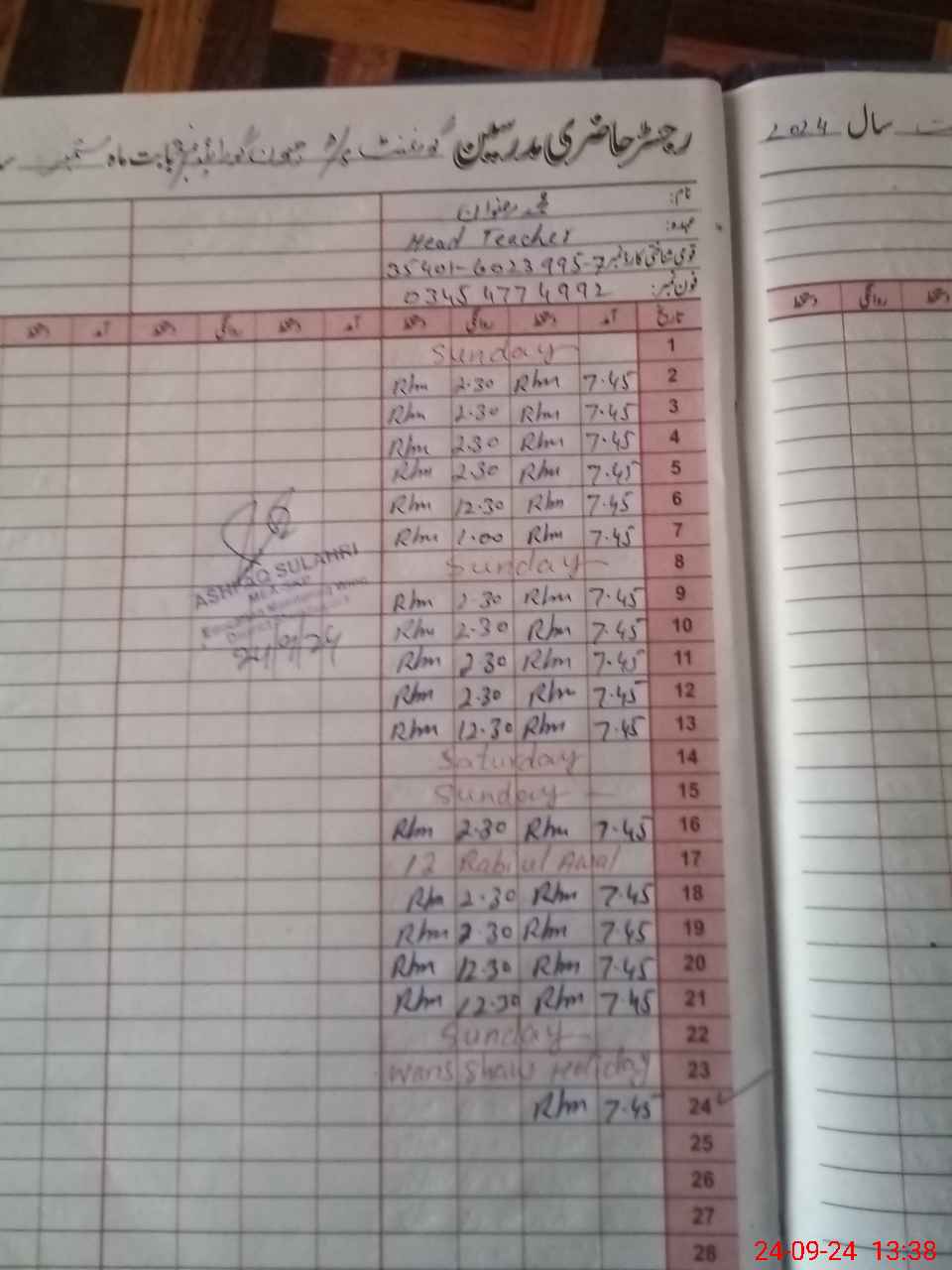 | Name: MU**** RI**** Designation: (School Headmaster's/Headmistress's) PST Phone/Cell Number: 03**** |