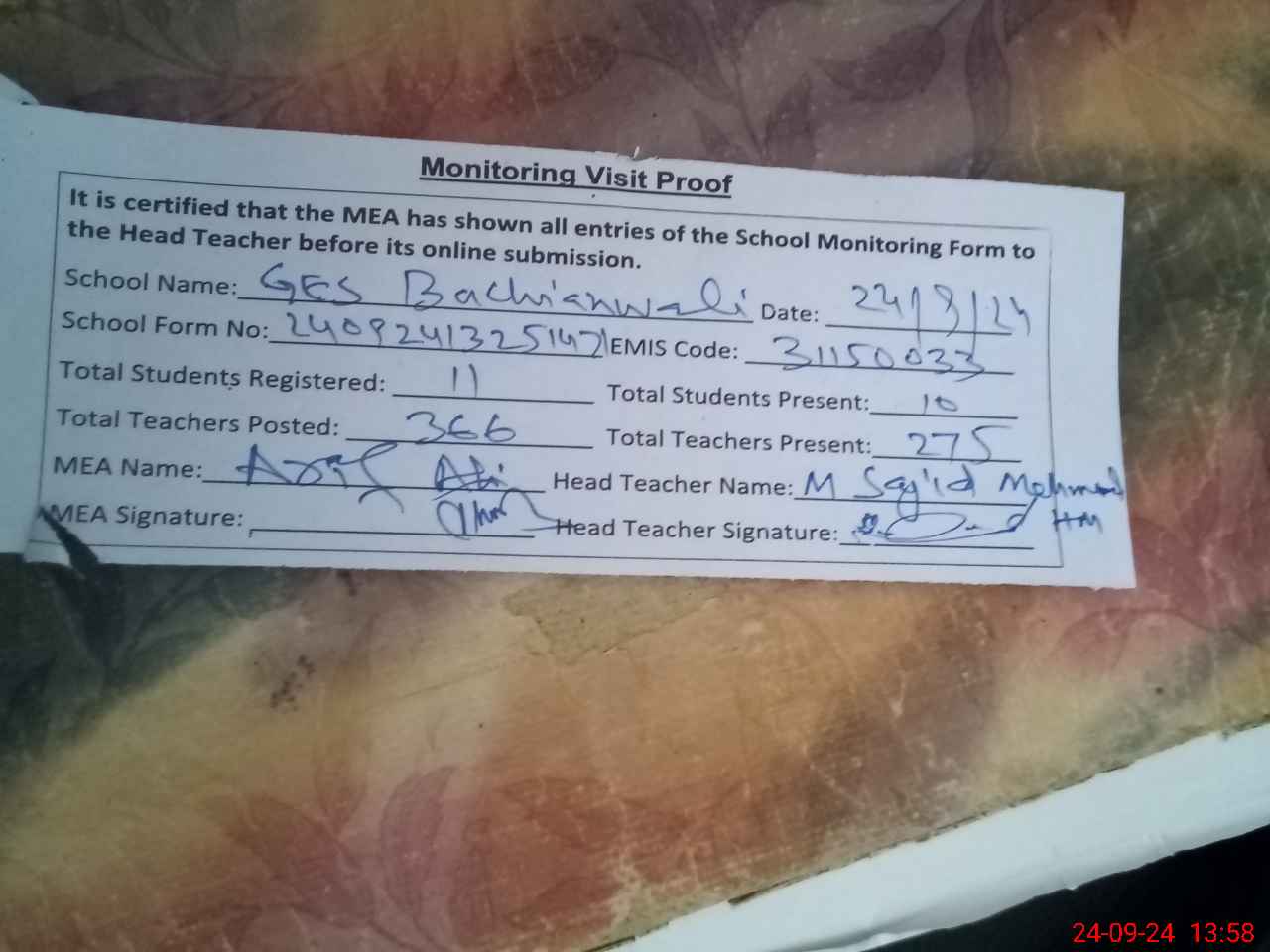 | Remarks (Use Separate Page if Required): Books record was not maintained HM gave record from his own memory Class attendance register not available taken from roznamcha Lawns are with long and neglected grass | |||||
