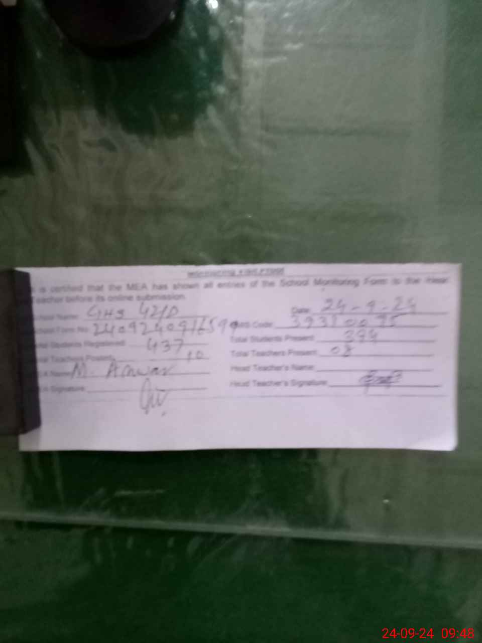 | Attendance Register | Head Teacher | MEA with School | Visit Proof |