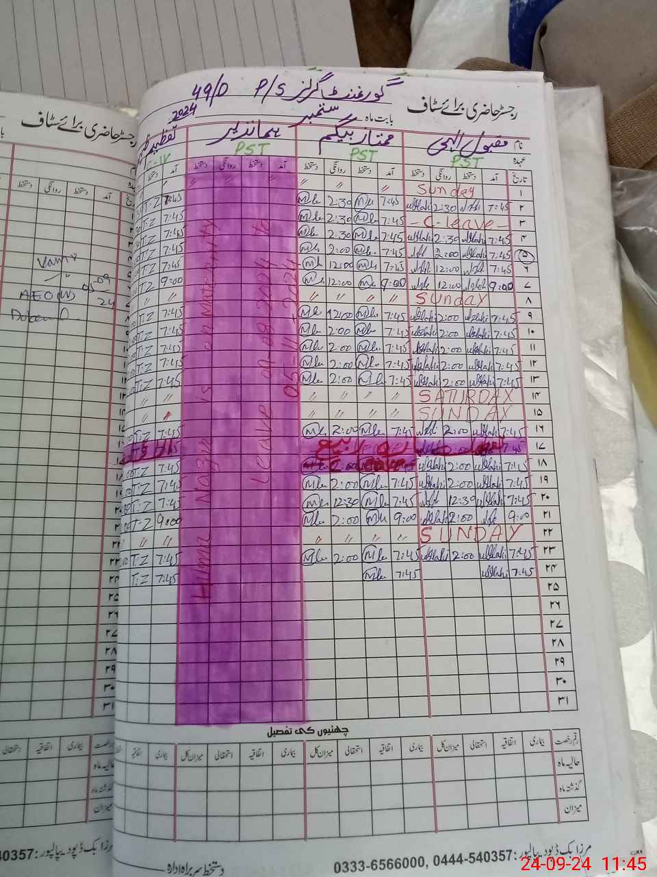 | 35**** | Hu**** Na**** | PST | Regular | 31 | 0 | 0 | 31 | 0 | 0 | 0 | 0 | 0 | Maternity |