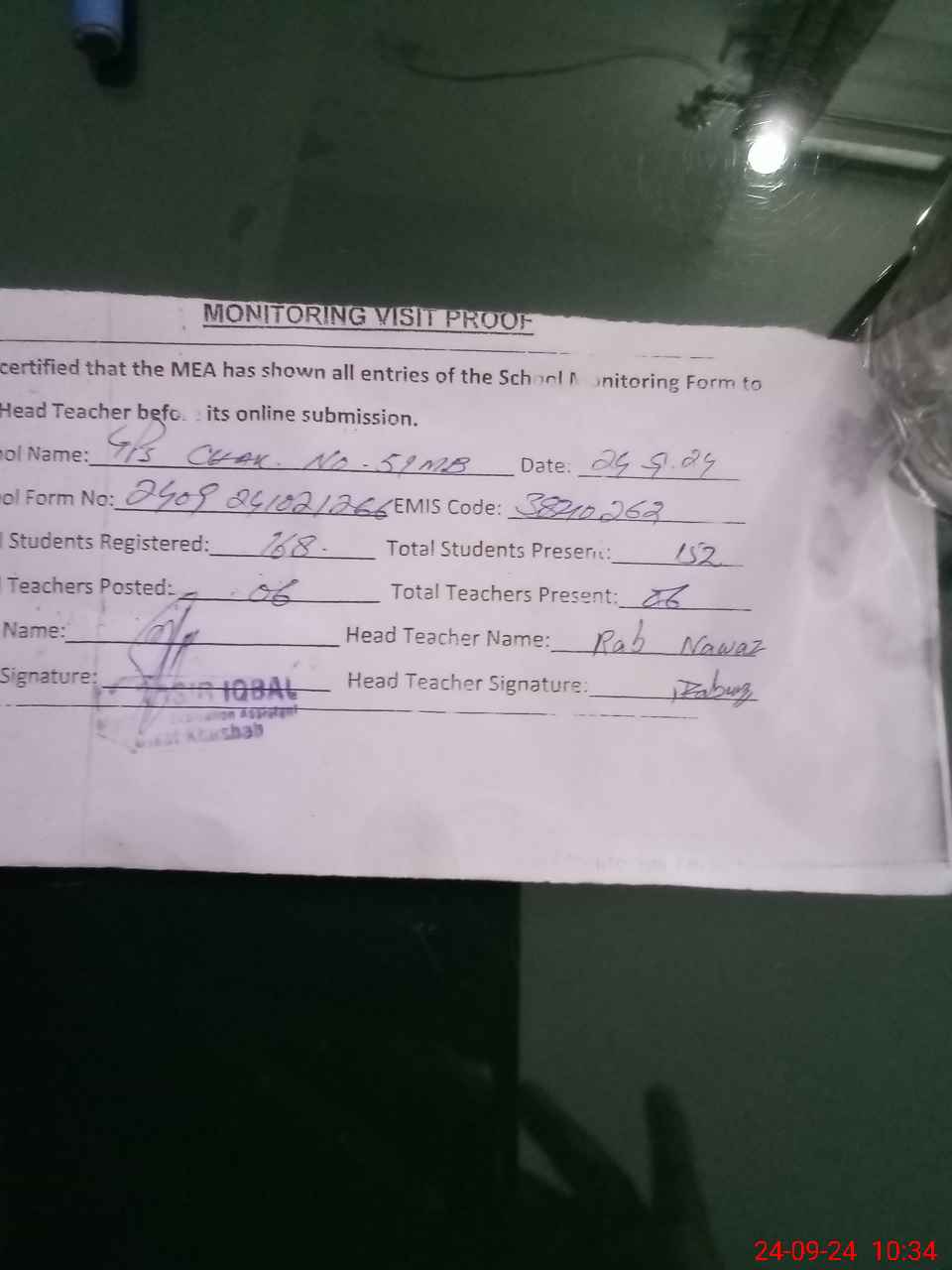 | EMIS Code: 38210262 | Name of School: GPS CHAK NO 51 MB | |||