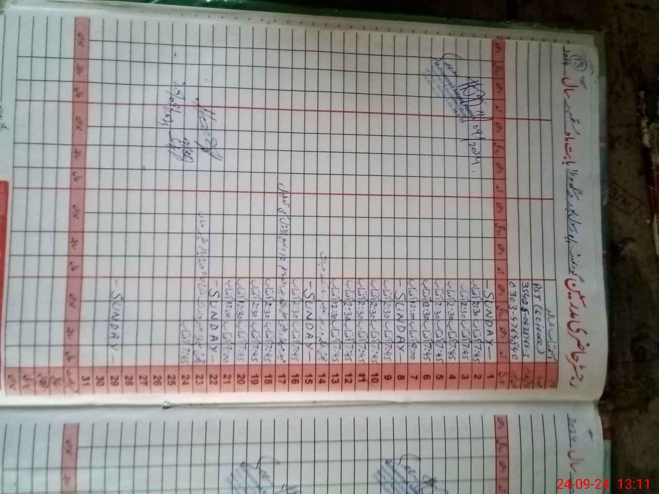 | CNIC | Full Name | Designation | R/C | Absence During Last Calender Month |