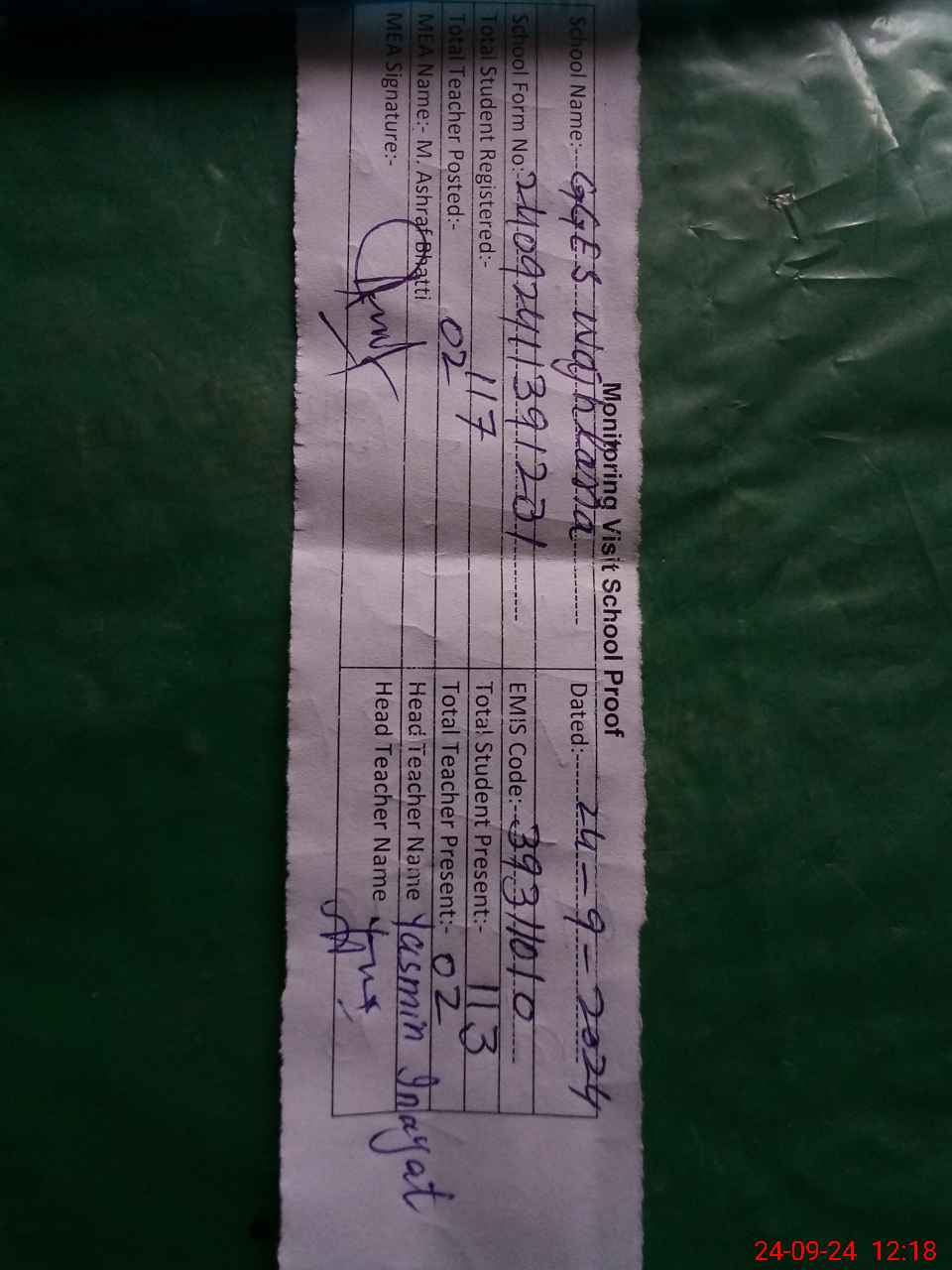 | EMIS Code: 39311010 | Name of School: GGES WAJHLANA | |||