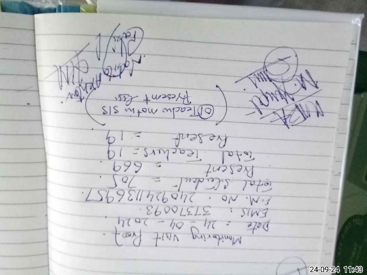 | Monitoring Date: 24-09-2024 | Start Time: 24-09-2024 11:15 AM | End Time: 24-09-2024 11:43 AM | Name of MEA: Rt**** Mu**** Ha**** | |