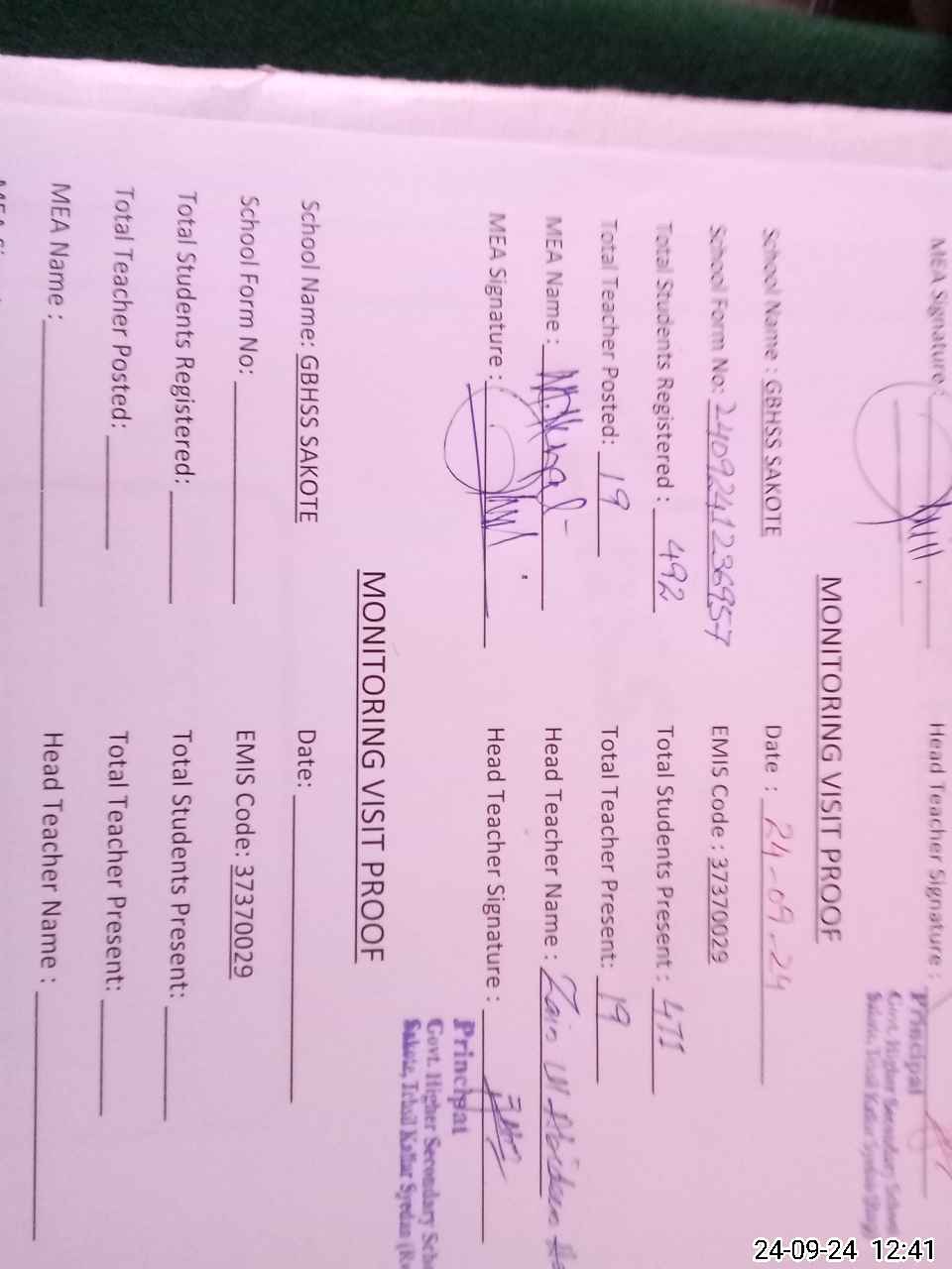 | EMIS Code: 37370029 | Name of School: GHSS SAKOTE | |||