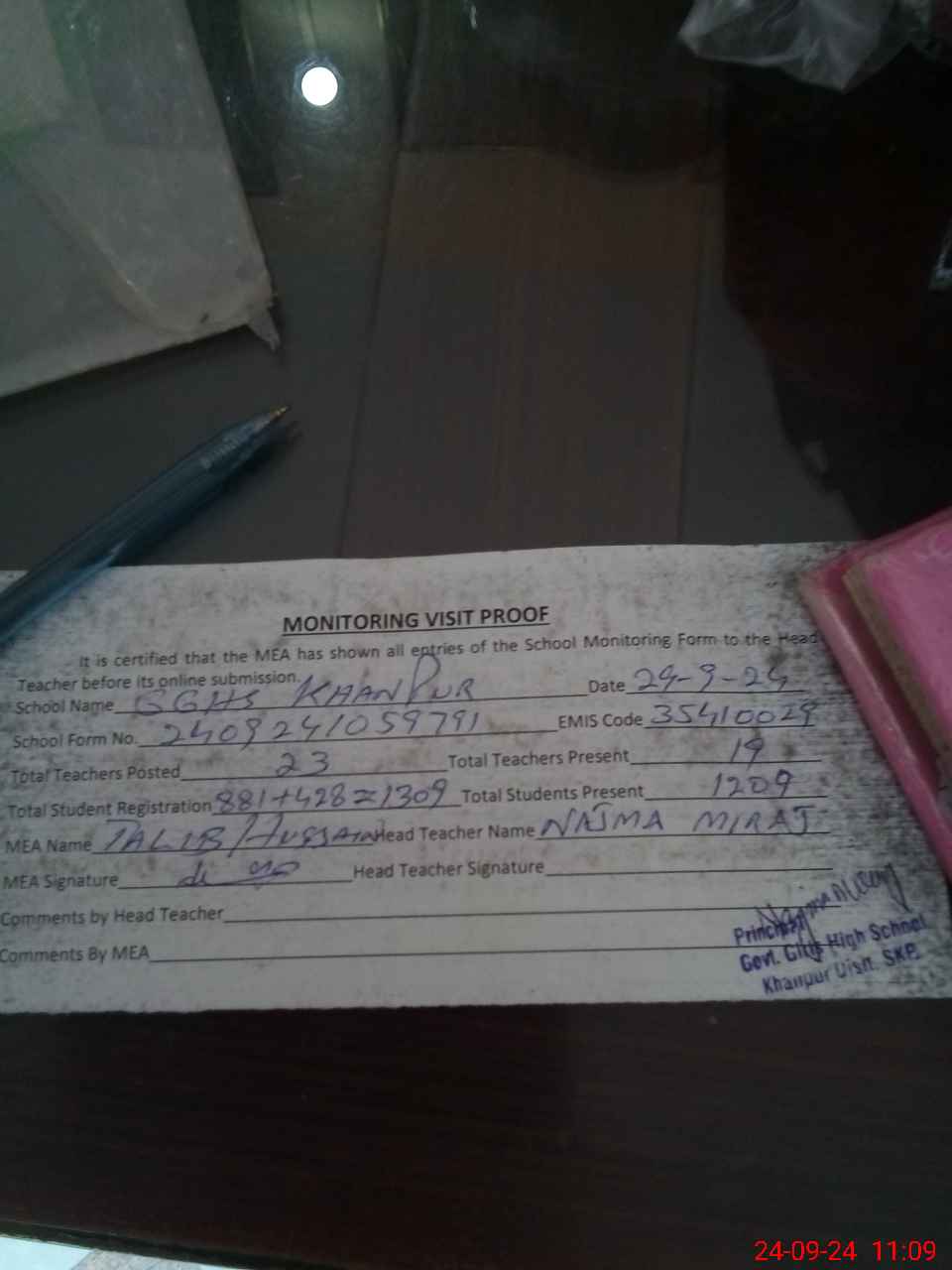 | EMIS Code: 35410029 | Name of School: GGHS KHANPUR | |||