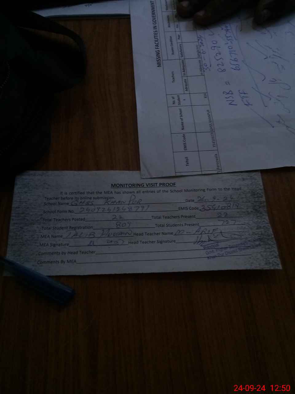 | Attendance Register | Head Teacher | MEA with School | Visit Proof |