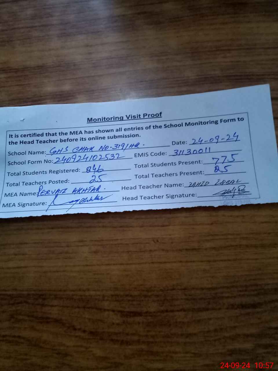 | EMIS Code: 31130011 | Name of School: GHSS CHAK 319/HR | |||