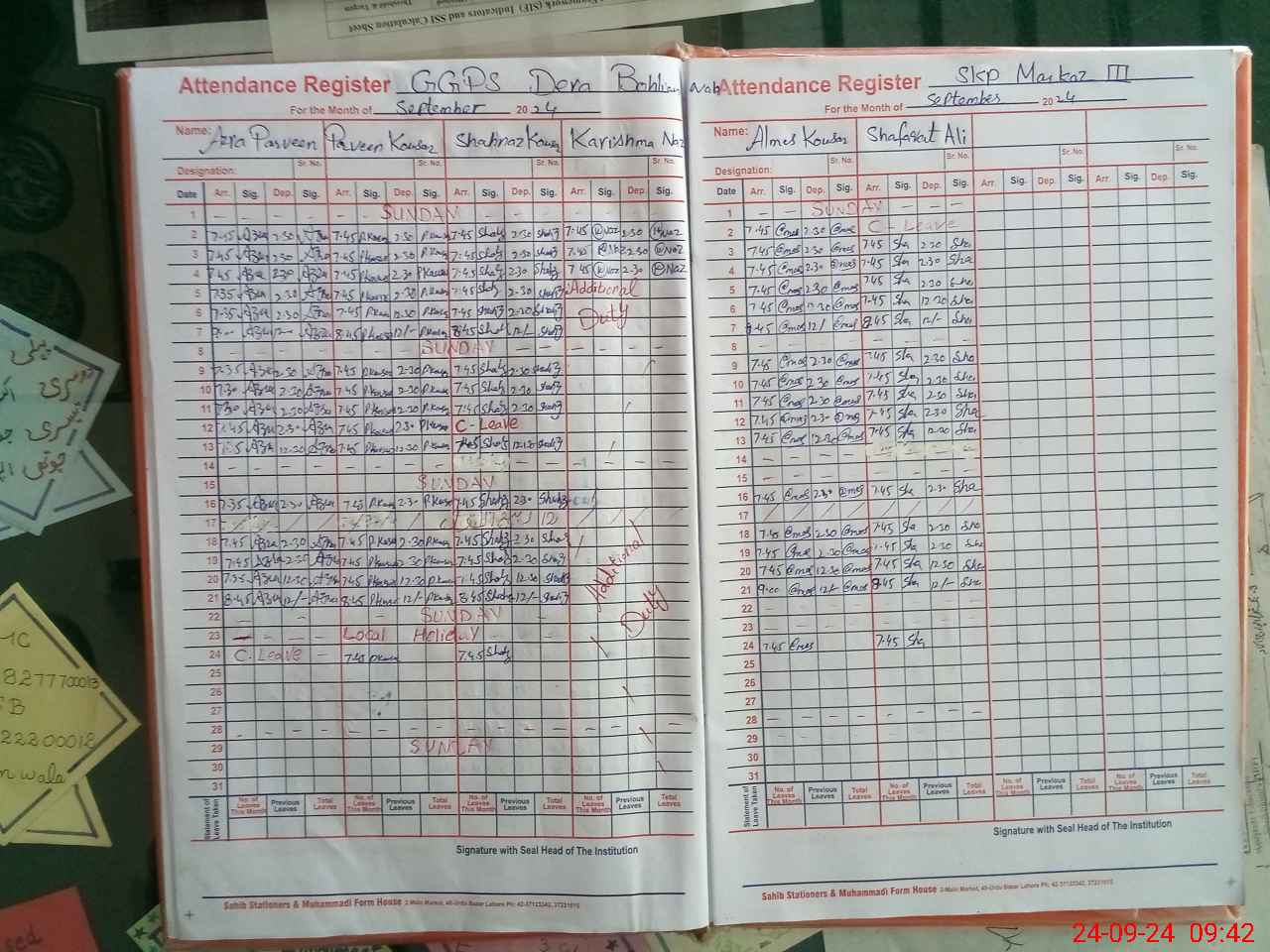 | CNIC | Full Name | Designation | R/C | Absence During Last Calender Month |