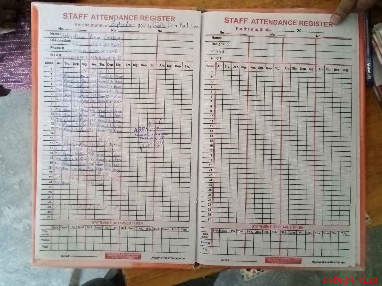| Name: An**** Sh**** Designation: (School Headmaster's/Headmistress's) PST Phone/Cell Number: 03**** |