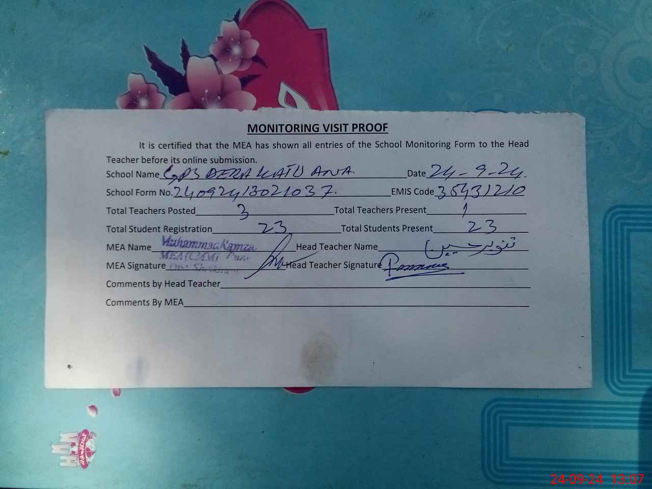 | EMIS Code: 35431210 | Name of School: GPS DERA KATU ANA | |||